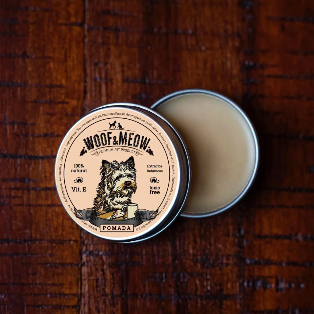 Pomada 100% natural compuesta por extractos botánicos cuidadosamente seleccionados para tratar, nutrir y proteger la piel de tu perro.