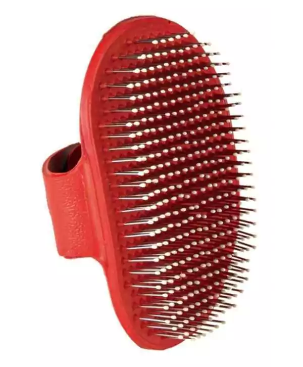 Cardina realizada en goma con un sujetador para la mano. La particularidad es que los dientes son de acero lo que la hace mas resistente aun.