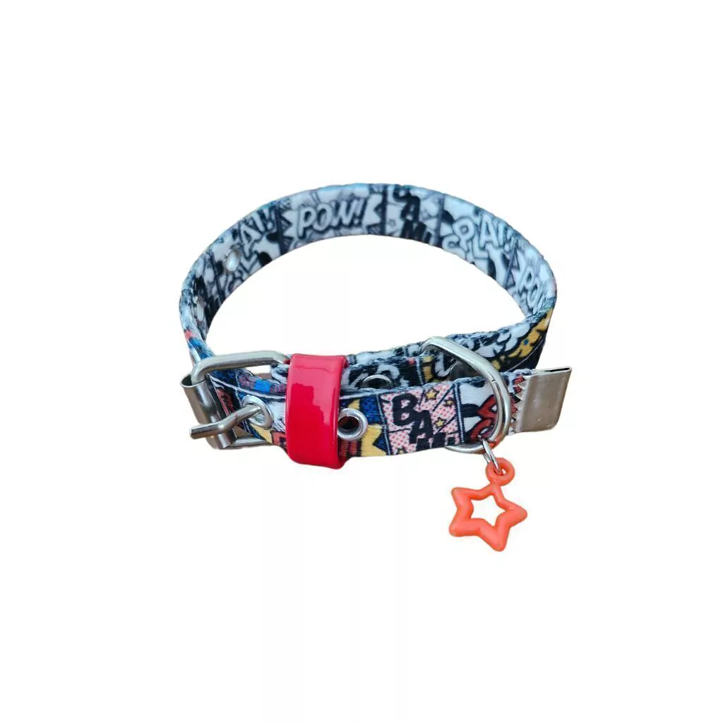 Con pasador de color simil cuero y dije de acrílico colgante.