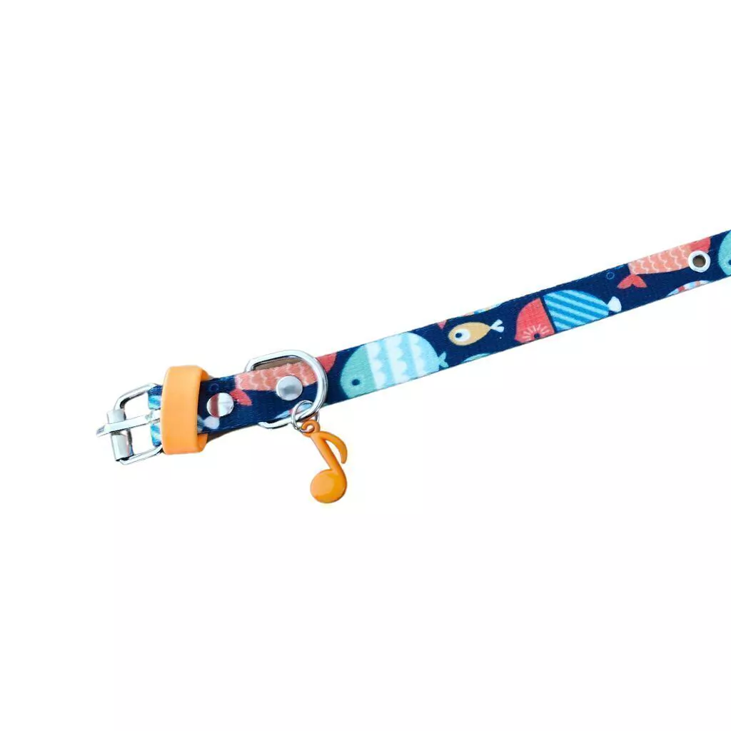 Con pasador de color simil cuero y dije de acrílico colgante.
