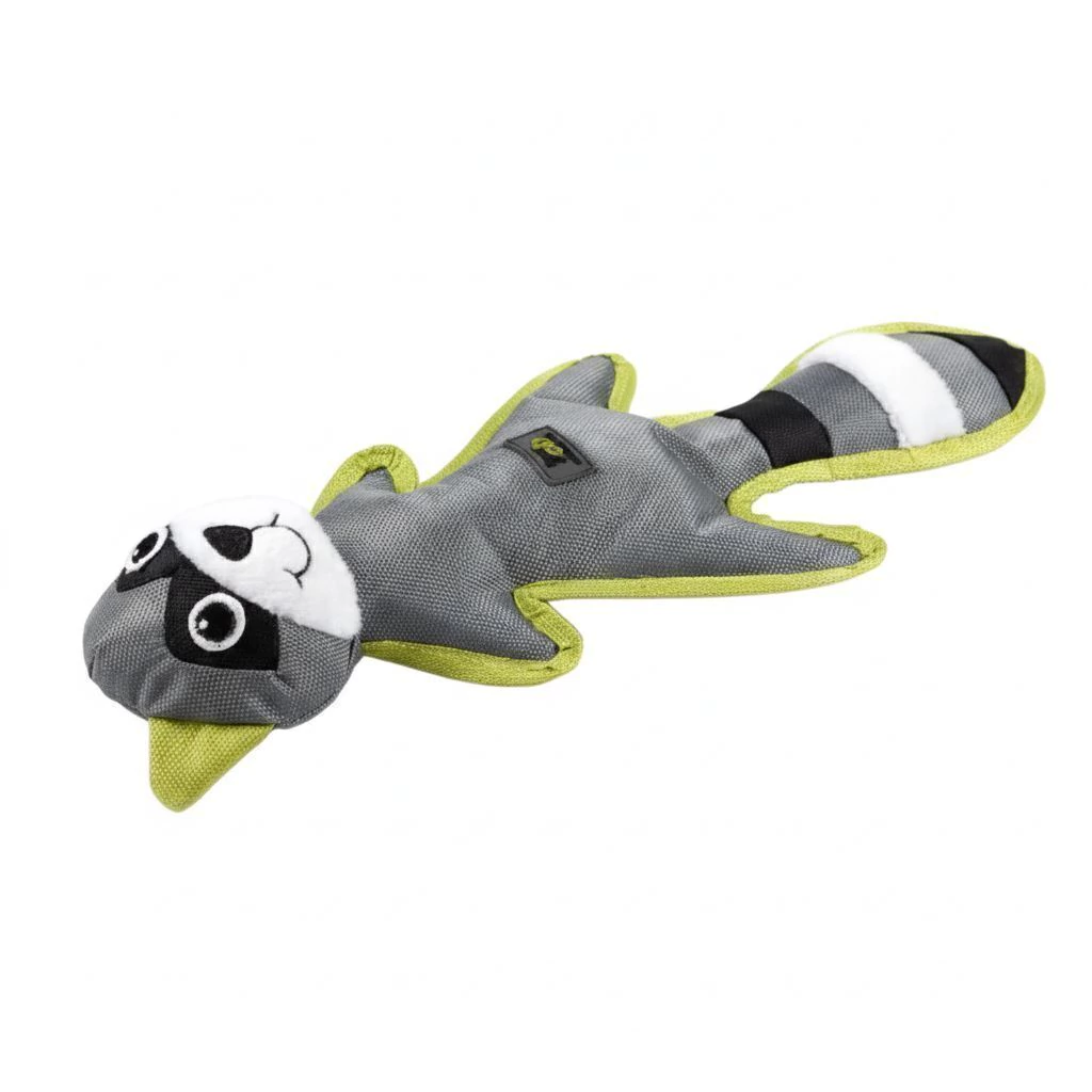 Hecho para perros activos que aman jugar al aire libre. Este mapache combina diseño divertido con materiales súper duraderos. Su tela tipo poliester balístico resiste tironeos y mordidas moderadas, mientras que el chifle interno mantiene el interés durante el juego. Ideal para lanzar, traer o jugar a tirar.