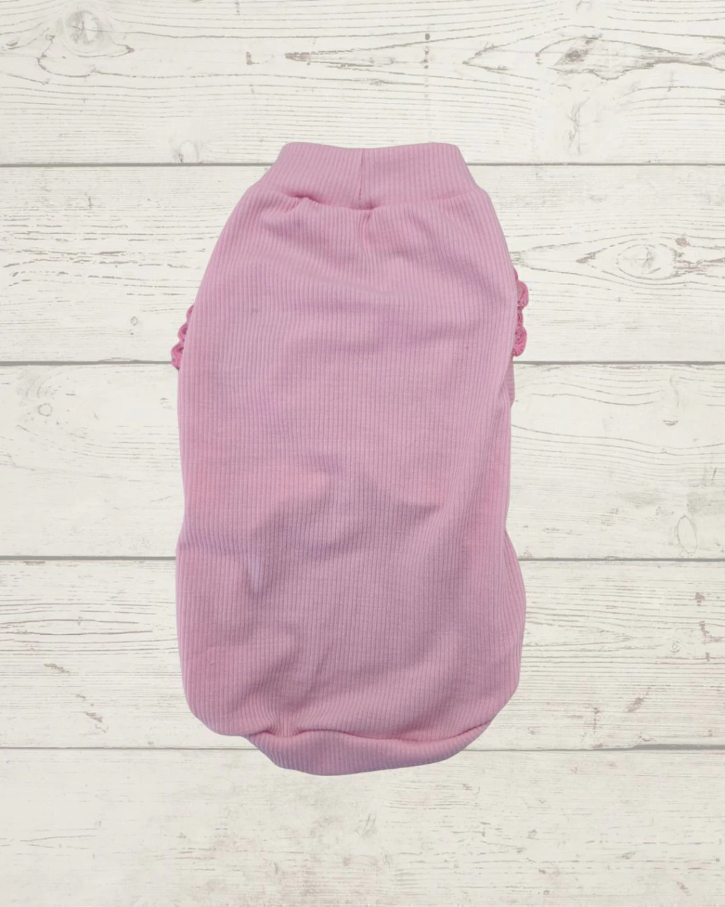 Musculosa de morley de algodón color rosa con detalles de puntilla en mangas.