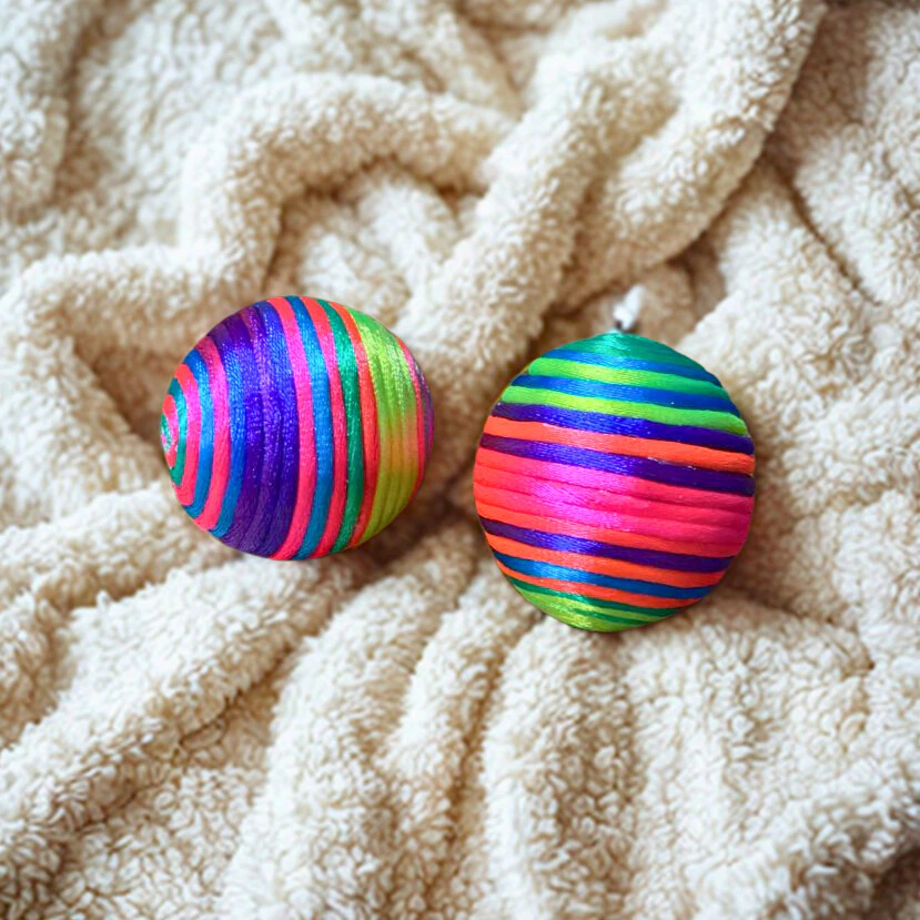 Una explosión de color y diversión para tu gato. Esta pelotita está hecha de plástico liviano, forrada con hilo de seda multicolor y con un sonajero interno que estimula el juego con cada movimiento.
