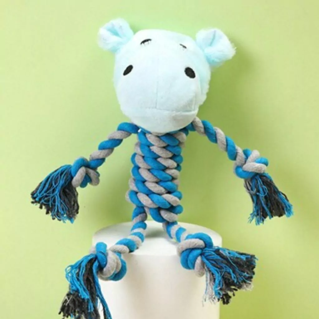 Este juguete combina lo mejor de dos mundos: una cabeza de peluche suave con chifle integrado para llamar la atención de tu mascota, y un cuerpo de soga resistente, ideal para juegos de tironeo.